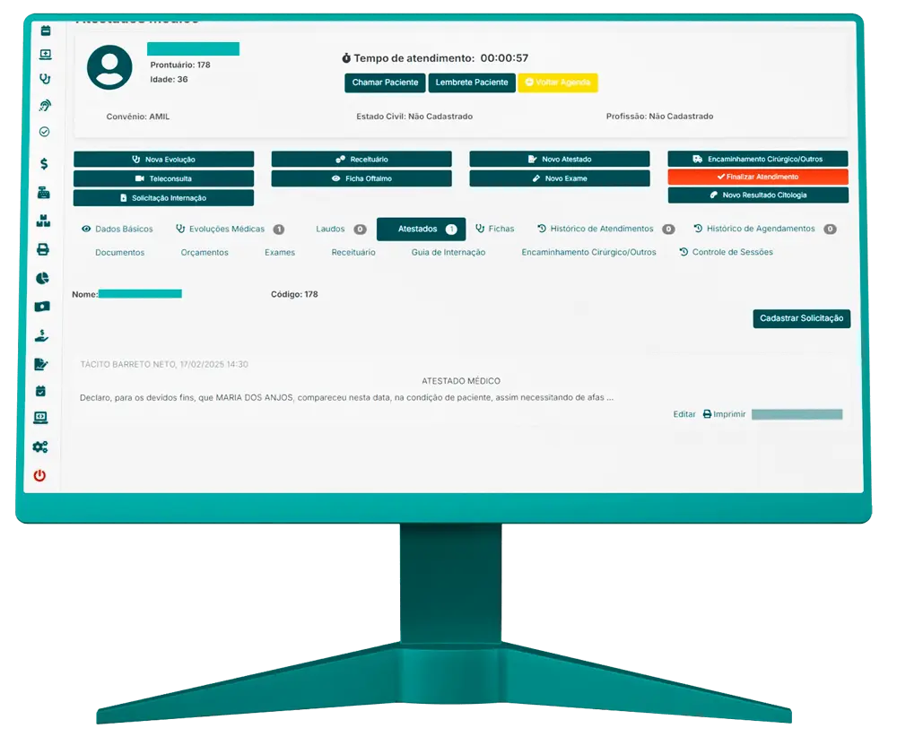 Agenda inteligente, prontuário digital e menos faltas: seu consultório mais organizado sem perder o foco central no seu paciente.